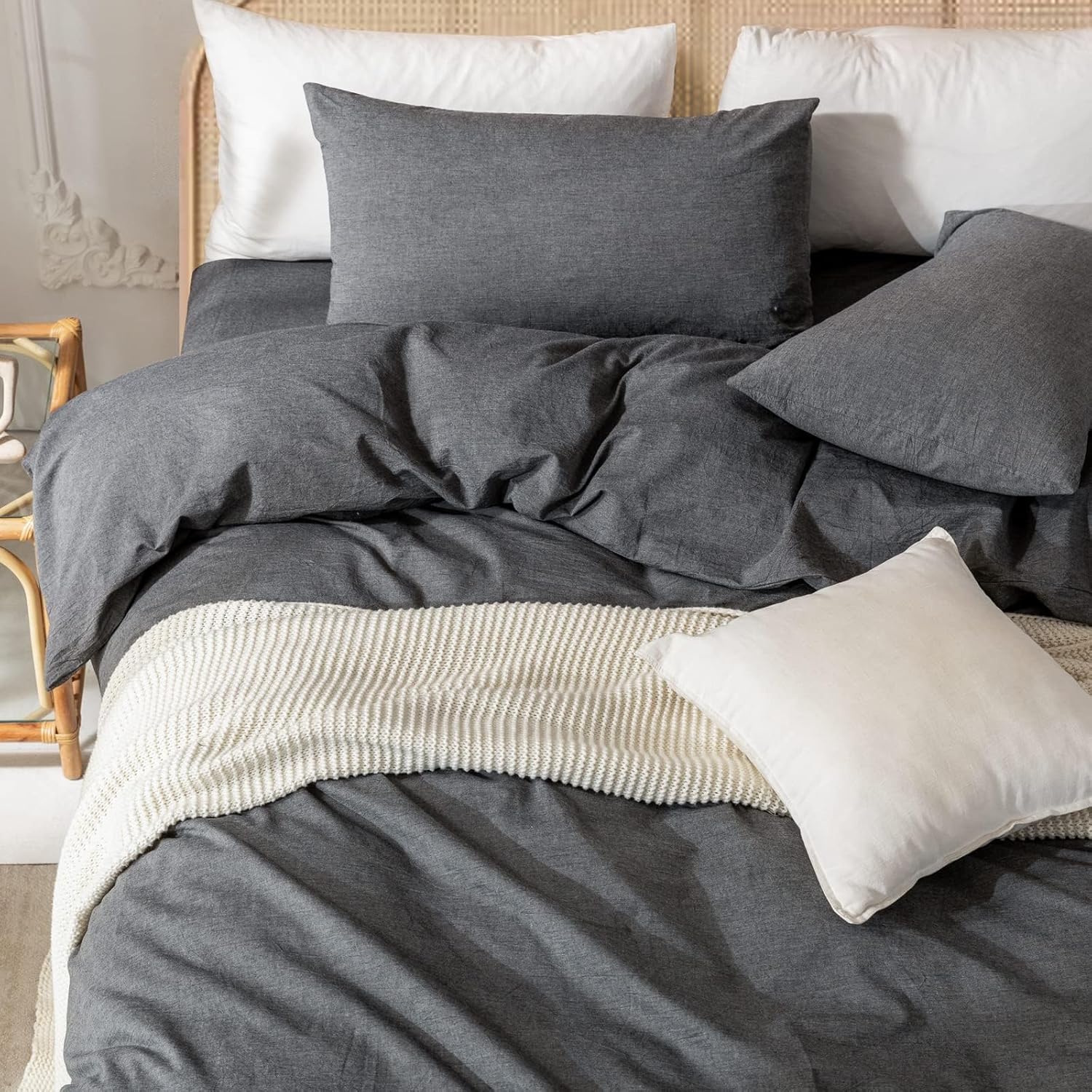 JOLUSERE 100% Organic Yarn-Dyed Cotton Duvet Cover King Set, 3 Pieces Cotton Bedding Duvet Cover,Ultra Soft & Fade Resistant,Gentle Black