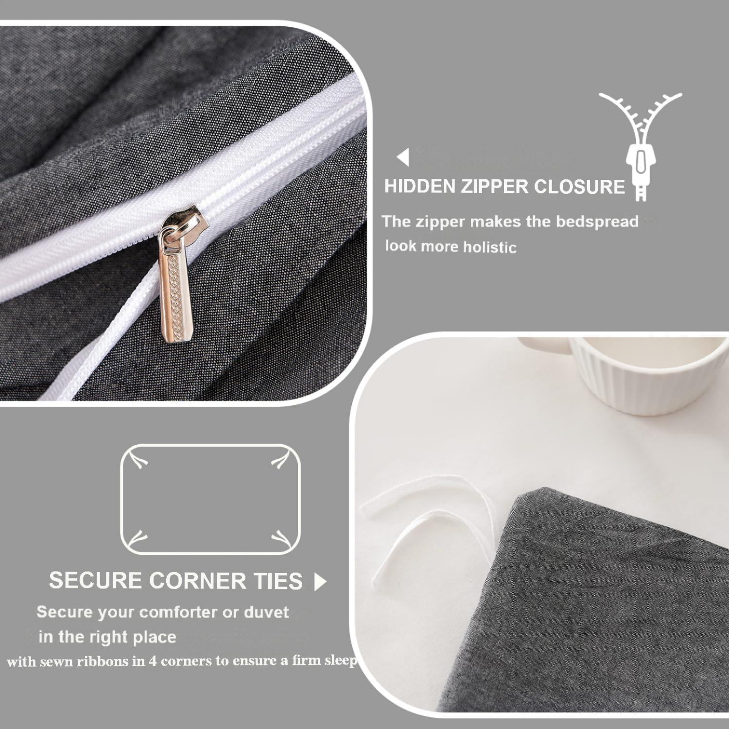 Feature10: UPGRADE YOUR BEDROOM WITH THIS TIMELESS SET: No wrinkling, snagging, durable than other cotton duvet cover. Switch to healthier, longer-lasting bedding--the organic yarn-dyed cotton set stays vibrant & soft for years, while ordinary cotton fades and wears out fast.