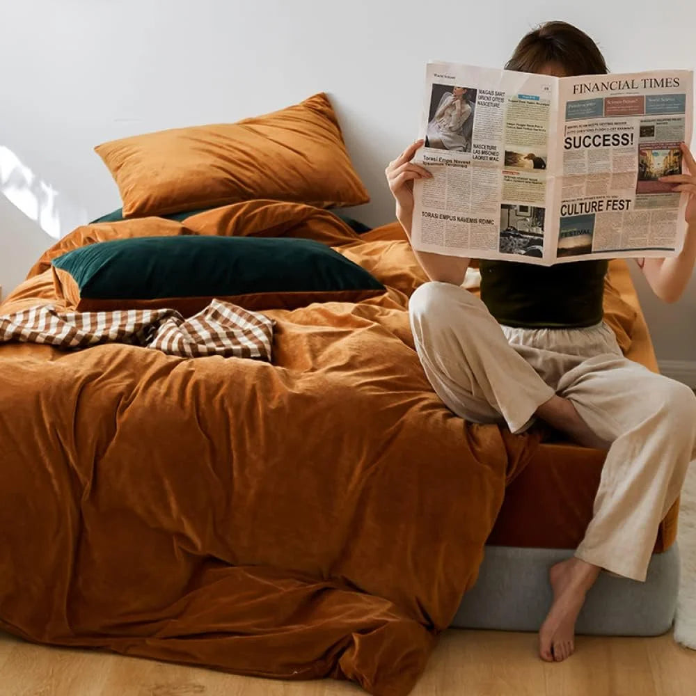Feature4: Double Side Design--Ultra Fluffy Caramel Velvet Fabric-Double-sided velvet duvets offer consistent softness, longer lifespan from reversible use, and benefits include uniform comfort