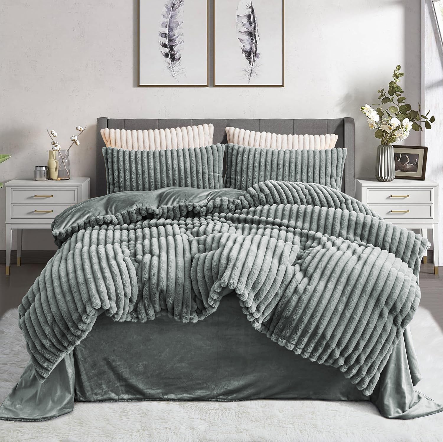 Feature8: Excellent Stripe Pattern with 3D Touching-This fluffy, luxury and elegant winter duvet cover set offers you amazing senses and makes the bedroom match any home decor styles and make your home an affluent and complete look