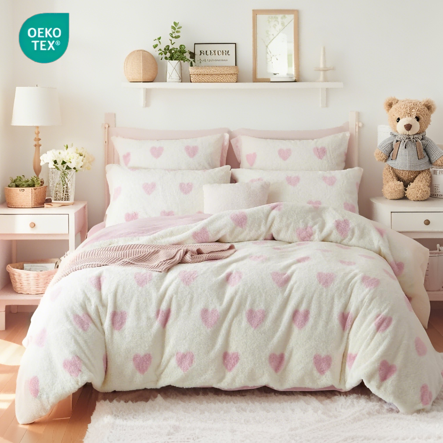 Feature6: Fluffy Love Heart Pattern Duvet Cover with White Color- Uniquely heart printed and adding a attractive touch to your room decor.