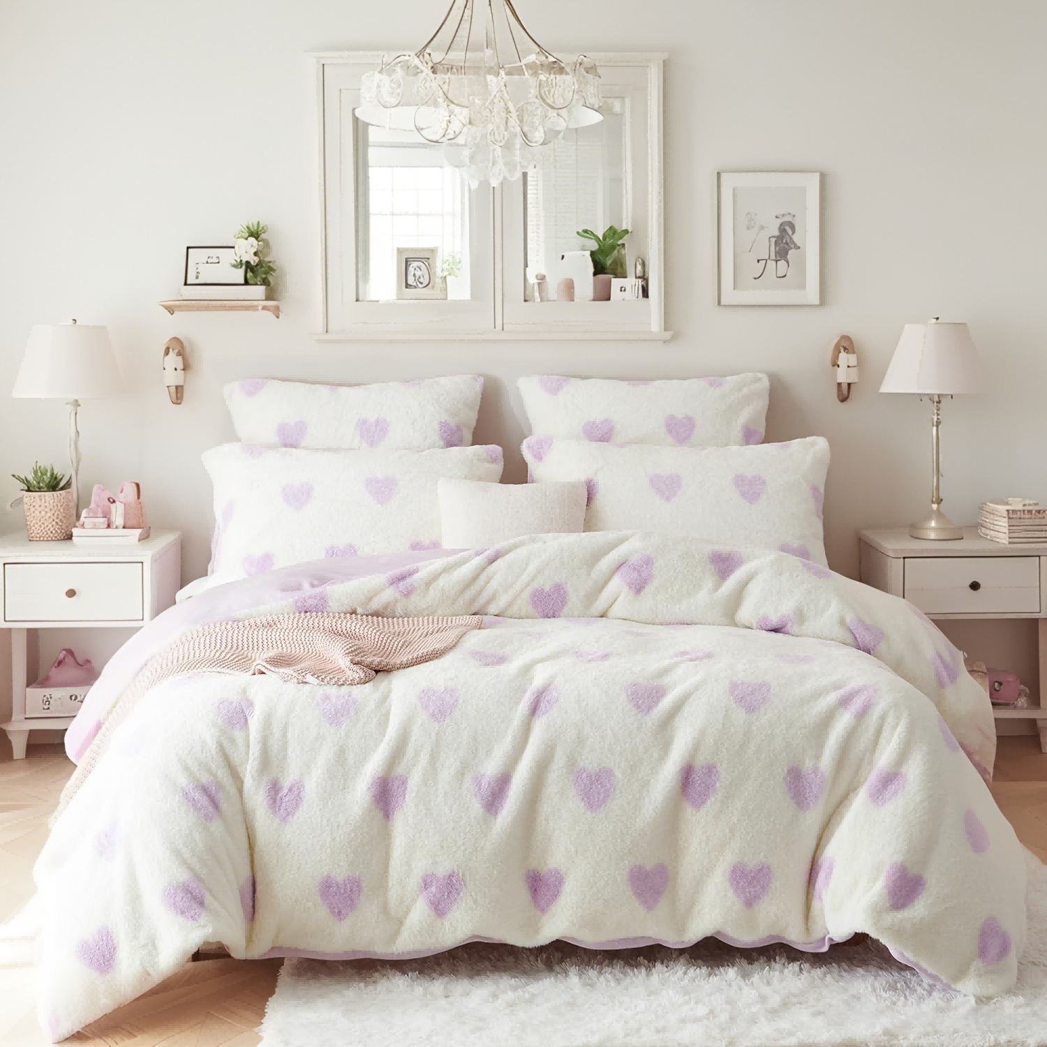 Feature6: Fluffy Love Heart Pattern Duvet Cover with White Color- Uniquely heart printed and adding a attractive touch to your room decor.